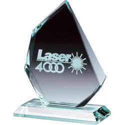 Excellent value jade glass iceberg plaque, which can be decorated with your logo, text or crest and is supplied in a satin lined presentation box. Height 150mm
